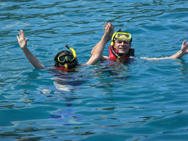 Lu saindo da įgua e dizendo que estava uma maravilha